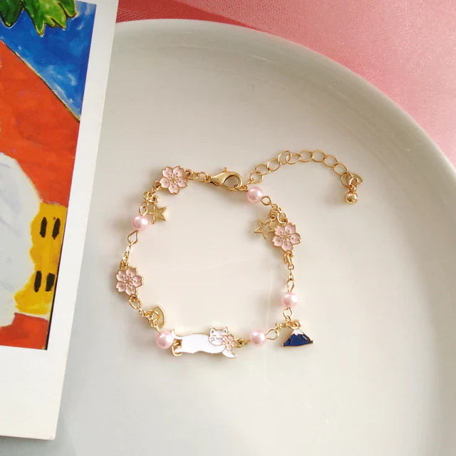 Japan Korea Stern Mond Armband Für Frauen Mädchen Mode Rosa Kristall Perle Kette Armband Großhandel Designer Schmuck Party Geschenk